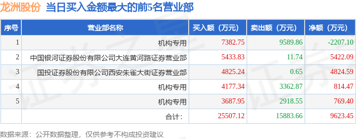 从龙虎榜公布的当日买卖数据来看,机构合计净卖出623.24万元。陈小群、朱雀大街等知名游资榜上有名。(知名游资陈小群一般指中国银河证券股份有限公司大连黄河路证券营业部席位、知名游资朱雀大街一般指国投证券股份有限公司西安朱雀大街证券营业部席位,根据市场资料整理,仅供参考)