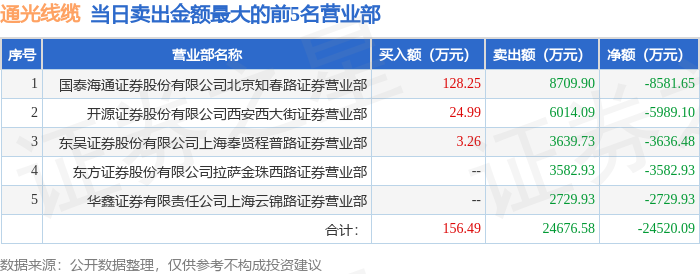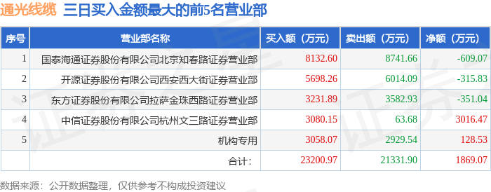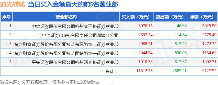 证券之星消息,沪深交易所2025年12月12日公布的交易公开信息显示,通光线缆(300265)因日涨幅达到15%的前5只证券,日换手率达到30%的前5只证券,连续三个交易日内,涨幅偏离值累计达到30%的证券登上龙虎榜。此次是近5个交易日内第2次上榜。