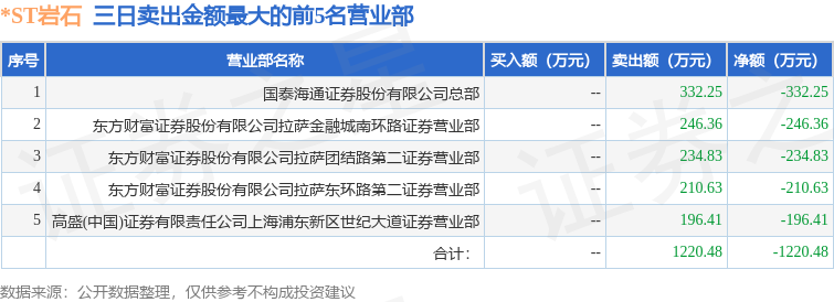 证券之星消息,沪深交易所2025年12月12日公布的交易公开信息显示,*ST岩石(600696)因ST、*ST证券连续三个交易日内收盘价格跌幅偏离值累计达到12%的证券登上龙虎榜。此次是近5个交易日内第1次上榜。