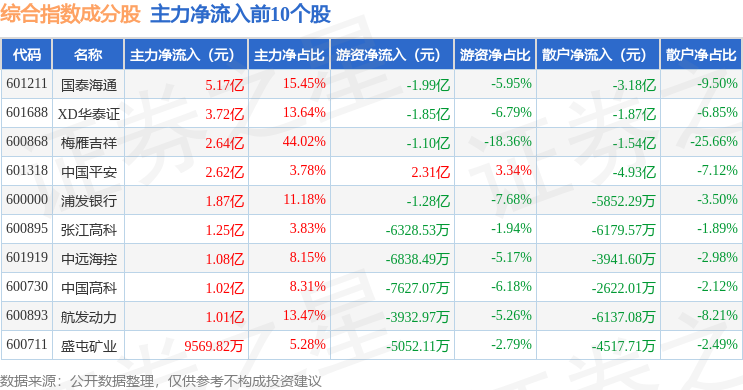 资金流向方面,综合指数(000008)成份股当日主力资金净流出合计24.11亿元,游资资金净流入合计1.28亿元,散户资金净流入合计22.83亿元。成份股资金流向详情见下表: