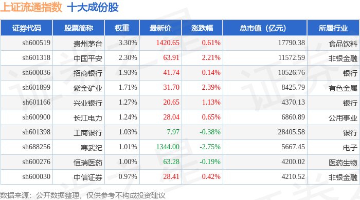 上证流通(000090)指数十大成份股详情如下: