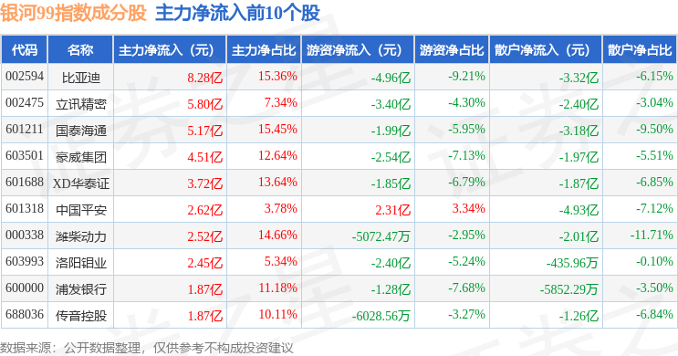 资金流向方面,银河99(000959)指数成份股当日主力资金净流出合计38.94亿元,游资资金净流入合计13.61亿元,散户资金净流入合计25.33亿元。成份股资金流向详情见下表: