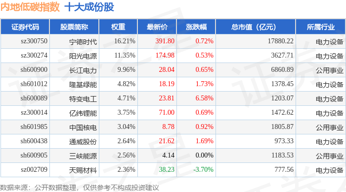 内地低碳(000977)指数十大成份股详情如下: