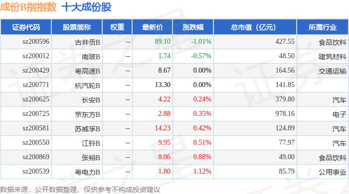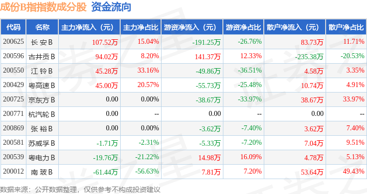 资金流向方面,成份B指(399003)指数成份股当日主力资金净流入合计208.91万元,游资资金净流出合计180.31万元,散户资金净流出合计28.6万元。成份股资金流向详情见下表:
