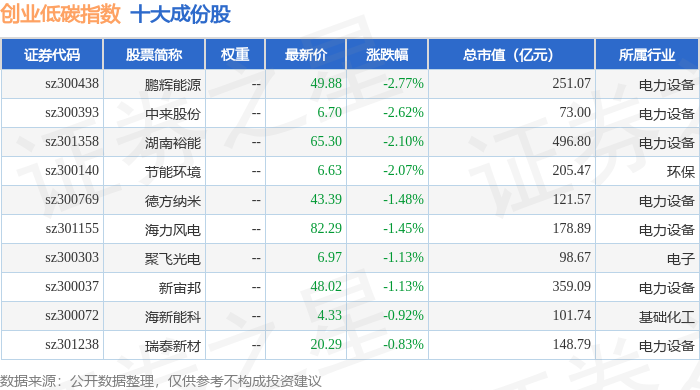 近10日内创业低碳(399259)指数成份股做了调整,新纳入了3只股票,剔除了3只股票。