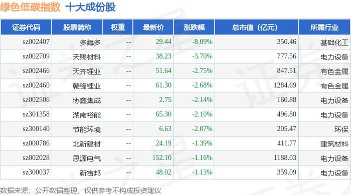资金流向方面,绿色低碳(399258)指数成份股当日主力资金净流出合计31.34亿元,游资资金净流出合计7.53亿元,散户资金净流入合计38.87亿元。成份股资金流向详情见下表: