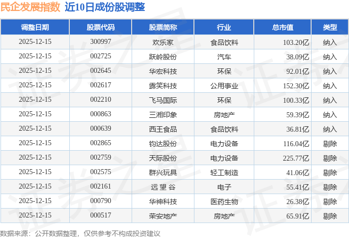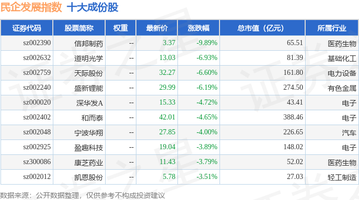 近10日内民企发展(399292)指数成份股做了调整,新纳入了7只股票,剔除了6只股票。