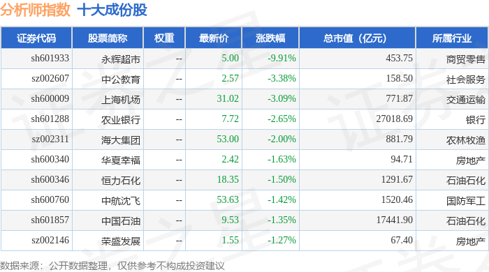 分析师指数(399354)十大成份股详情如下: