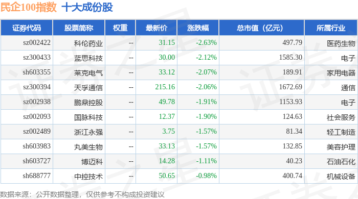 资金流向方面,民企100(399362)指数成份股当日主力资金净流出合计32.47亿元,游资资金净流入合计1.21亿元,散户资金净流入合计31.26亿元。成份股资金流向详情见下表: