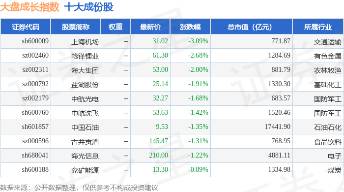 大盘成长(399372)指数十大成份股详情如下:
