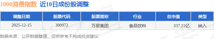 近10日内1000消费(399385)指数成份股做了调整,新纳入了1只股票。