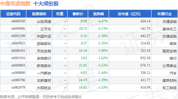 中盘低波(399406)指数十大成份股详情如下: