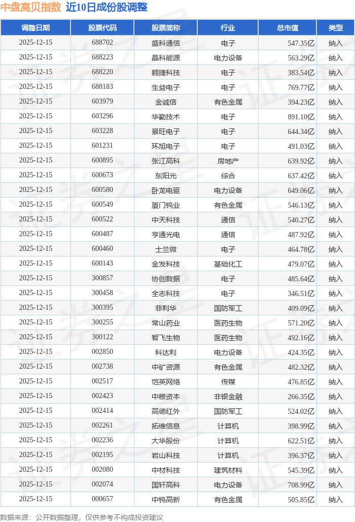 近10日内中盘高贝(399407)指数成份股做了调整,新纳入了32只股票。