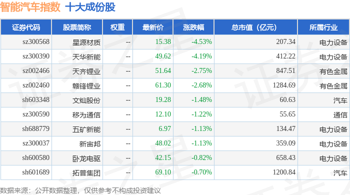 智能汽车(399432)指数十大成份股详情如下: