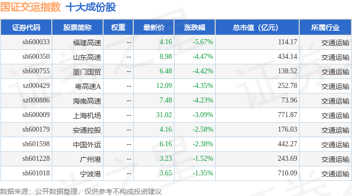 近10日内国证交运(399433)指数成份股做了调整,新纳入了5只股票。