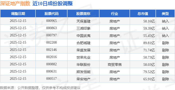 近10日内深证地产(399637)指数成份股做了调整,新纳入了3只股票,剔除了6只股票。