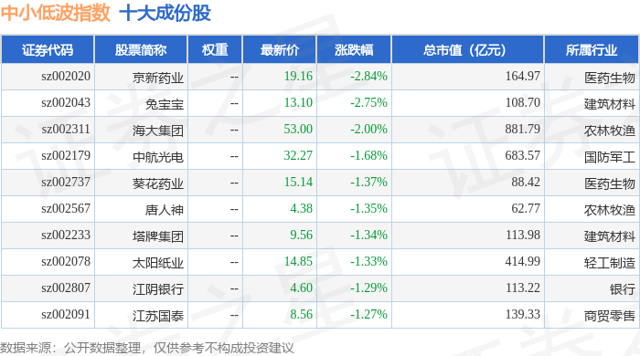 资金流向方面,中小低波(399663)指数成份股当日主力资金净流入合计6.89亿元,游资资金净流出合计13.1亿元,散户资金净流入合计6.2亿元。成份股资金流向详情见下表: