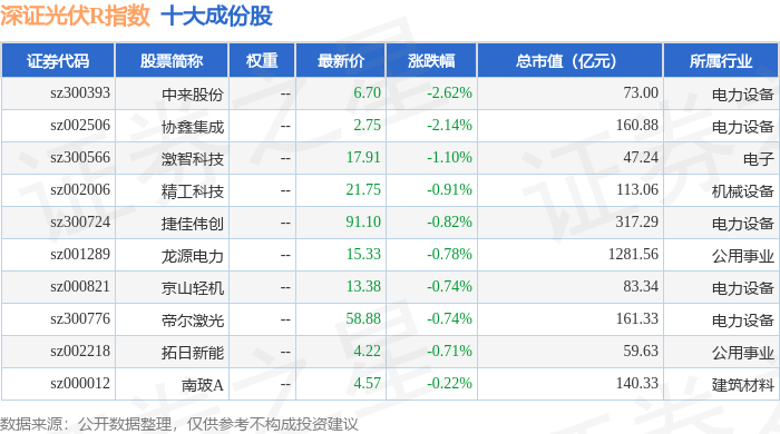 深证光伏R(470035)指数十大成份股详情如下: