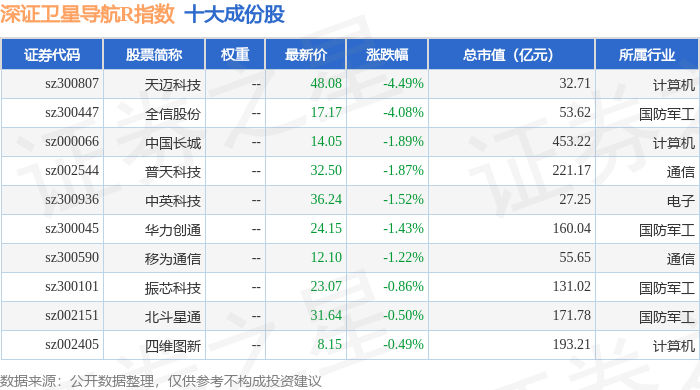 深证卫星导航R(470050)指数十大成份股详情如下: