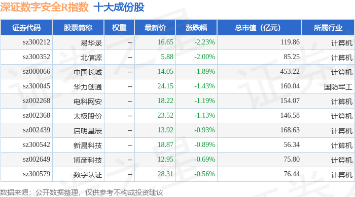 深证数字安全R(470052)指数十大成份股详情如下: