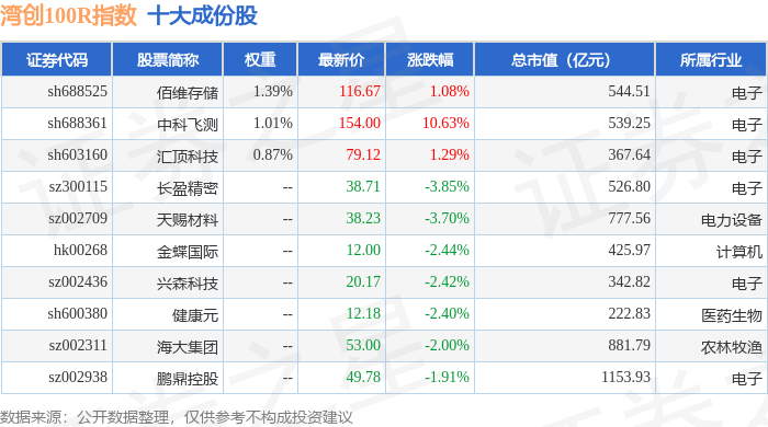 湾创100R(480001)指数十大成份股详情如下:
