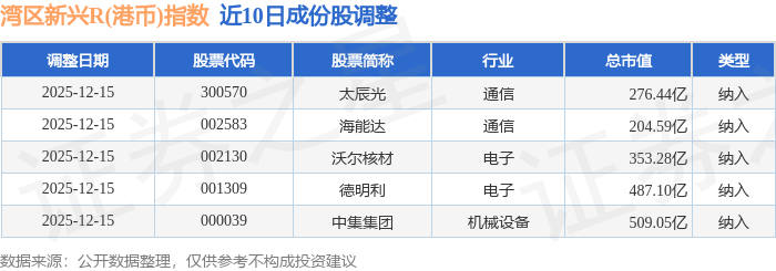 近10日内湾区新兴R(港币)(480008)指数成份股做了调整,新纳入了5只股票。