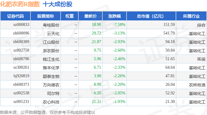 近10日内化肥农药R(480035)指数成份股做了调整,新纳入了4只股票,剔除了1只股票。
