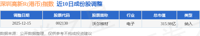 近10日内深圳高新R(港币)(480039)指数成份股做了调整,新纳入了1只股票。