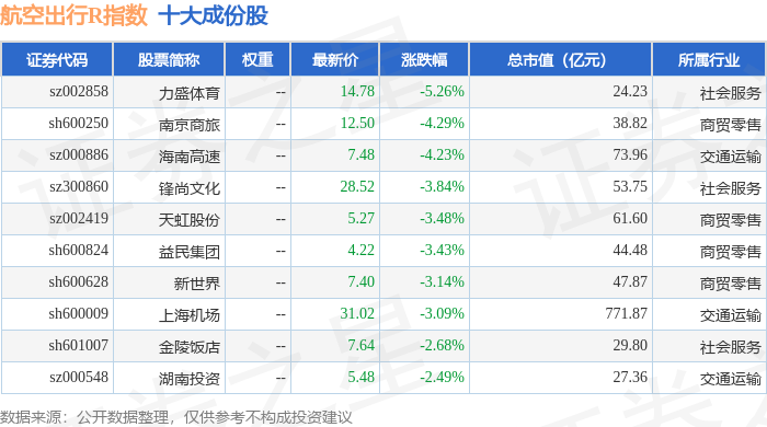 近10日内航空出行R(480059)指数成份股做了调整,新纳入了4只股票。