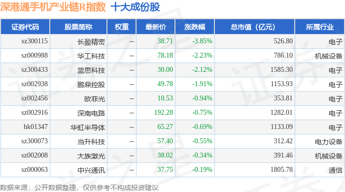 深港通手机产业链R(483009)指数十大成份股详情如下: