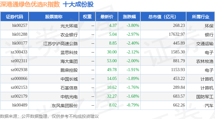 深港通绿色优选R(483011)指数十大成份股详情如下: