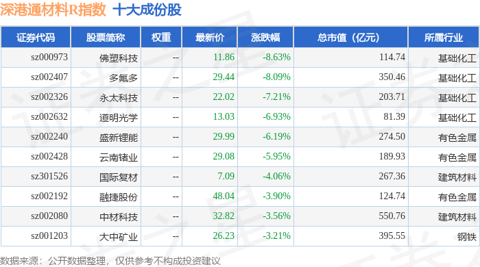 深港通材料R(483015)指数十大成份股详情如下: