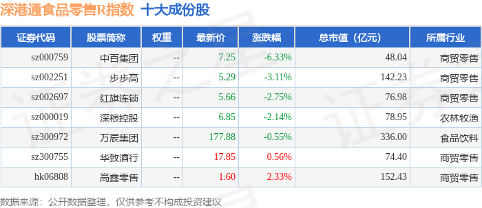 深港通食品零售R(483037)指数十大成份股详情如下: