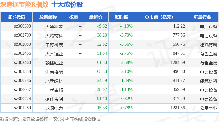 证券之星消息,12月12日,深港通节能R(483085)指数报收于2816.48点,涨0.29%,成交805.09亿元,换手率1.04%。当日该指数成份股中,上涨的有36家,罗博特科以5.32%的涨幅领涨,下跌的有12家,天华新能以4.19%的跌幅领跌。