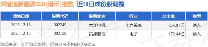 近10日内深港通新能源车R(港币)(483088)指数成份股做了调整,新纳入了2只股票。