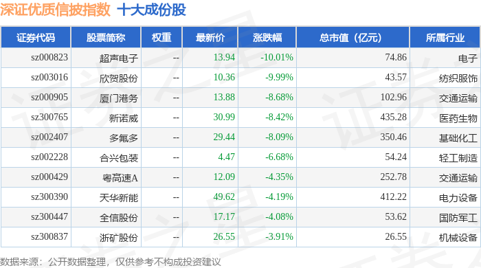 深证优质信披(970065)指数十大成份股详情如下: