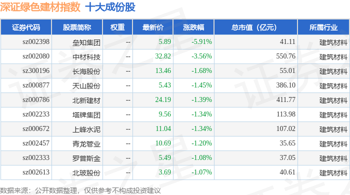 深证绿色建材(970077)指数十大成份股详情如下: