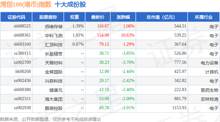 湾创100(港币)(980002)指数十大成份股详情如下: