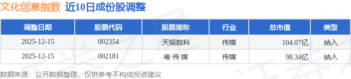 近10日内文化创意(980046)指数成份股做了调整,新纳入了2只股票。