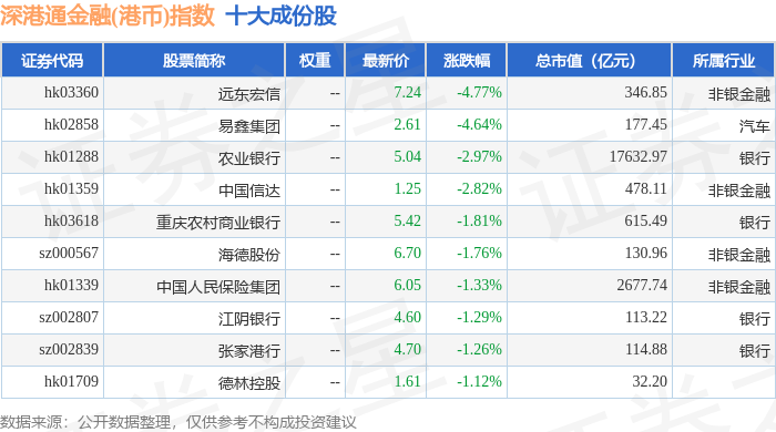 深港通金融(港币)(983026)指数十大成份股详情如下: