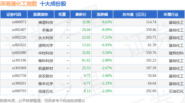 深港通化工(983063)指数十大成份股详情如下: