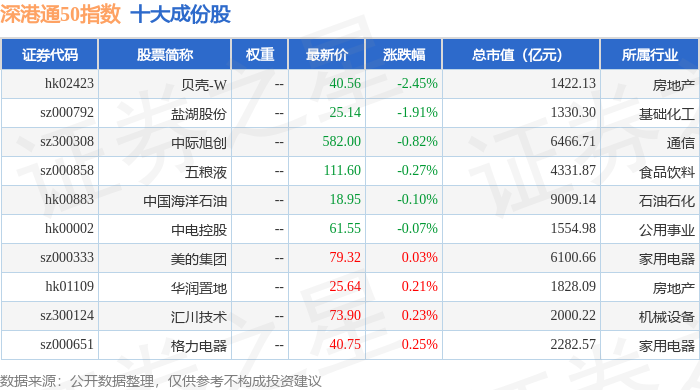 深港通50(983091)指数十大成份股详情如下: