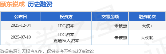 证券之星消息,根据天眼查APP于12月4日公布的信息整理,杭州颐东锐成生物科技有限公司天使+融资,融资额未披露,参与投资的机构包括IDG资本。