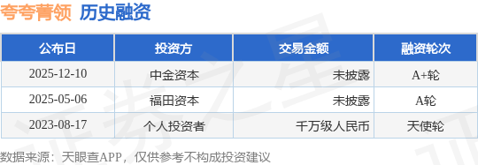 证券之星消息,根据天眼查APP于12月10日公布的信息整理,深圳夸夸菁领科技有限公司A+轮融资,融资额未披露,参与投资的机构包括中金资本。
