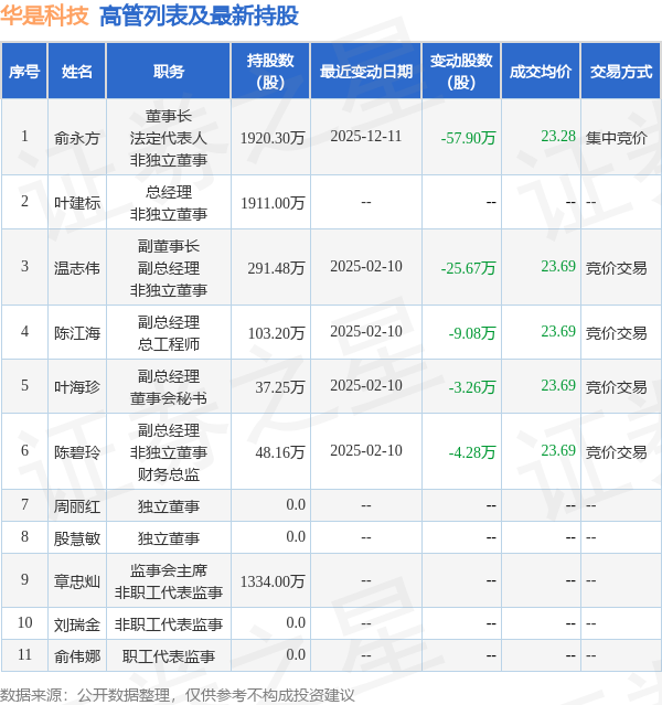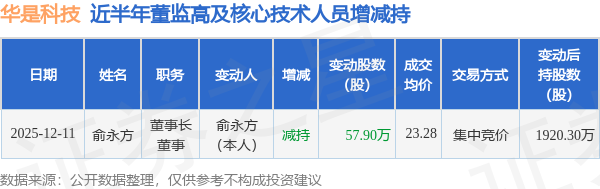 华是科技近半年内的董监高及核心技术人员增减持详情如下: