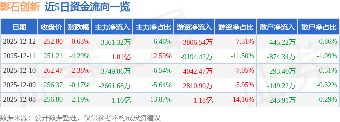 12月12日的资金流向数据方面,主力资金净流出3361.32万元,占总成交额6.46%,游资资金净流入3806.54万元,占总成交额7.31%,散户资金净流出445.22万元,占总成交额0.86%。