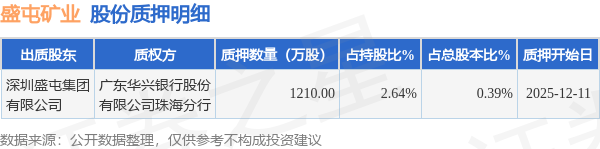 证券之星消息,盛屯矿业(600711)12月13日公开信息显示,股东深圳盛屯集团有限公司向广东华兴银行股份有限公司珠海分行合计质押1210.0万股,占总股本0.39%。质押详情见下表: