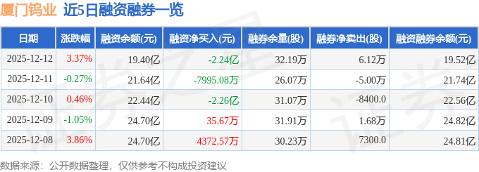 证券之星消息,截至2025年12月12日收盘,厦门钨业(600549)报收于38.04元,上涨3.37%,换手率4.18%,成交量64.93万手,成交额24.41亿元。