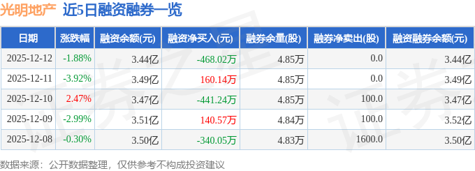 光明地产融资融券信息显示,融资方面,当日融资买入595.39万元,融资偿还1063.4万元,融资净偿还468.02万元。融券方面,融券卖出0.0股,融券偿还0.0股,融券余量4.85万股,融券余额15.18万元。融资融券余额3.44亿元。