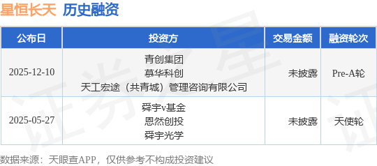 证券之星消息,根据天眼查APP于12月10日公布的信息整理,江西星恒长天技术有限公司Pre-A轮融资,融资额未披露,参与投资的机构包括青创集团,慕华科创,天工宏途(共青城)管理咨询有限公司。